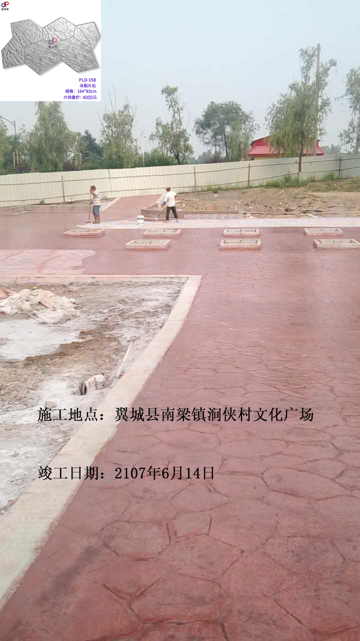項目名稱:河北省邯鄲車谷村健身廣場壓模壓花地坪工程 項目地址:河北省邯鄲車谷村 竣